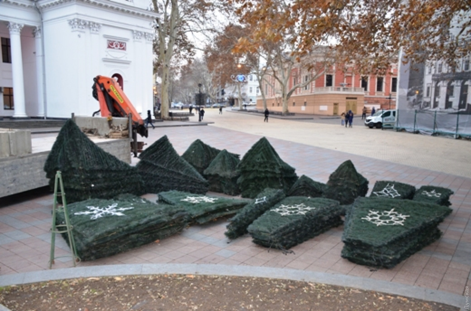 В Одессе собирают главную новогоднюю елку города: она будет с новым украшениемГлавную новогоднюю елку Одессы монтируют сейчас на Думской площади, у здания муниципалитета. Это все та же конструкция, что уже шестой год радует одесситов и гостей города, — младшая сестра знаменитой киевской Йолки, ставшей одним из символов Революции достоинства. Киевскую и одесскую елки создали специалисты черноморской компании «Люмьер». Высота одесской — 20 метров, диаметр основания — 9 м. Она состоит из металлического каркаса и искусственной хвои итальянского производства. Елку украсят гирлянды и дюролайт (прозрачный шнур со светодиодами), общая протяженность которых превышает 4 км. Светодиодов — 100 тысяч штук. Они светятся тремя цветами: зеленым, синим и золотистым. В мэрии говорят, что в этом году главную елку дополнит новое украшение. По замыслу мастеров коммунального предприятия «Одесгорсвет», вокруг нее по спирали закружит метелица из десяти тысяч светодиодов, по которой в большой красный мешок будут скатываться огромные подарки и елочные шары. Верхушку елки традиционно увенчает рождественская звезда. Кроме ели, на площади устанавливают светодиодные фигуры животных «Сказочного городка». В этом году к его обитателям присоединятся большие (2,5 м в высоту) фигуры трех поросят – символ наступающего 2019 года. Сказочные свинки сварены из железного каркаса и оформлены ярко-розовой светодиодной лентой. В праздничное убранство впервые «оденется» и Потемкинская лестница. Фото пресс-службы горсовета СМЕРТЬ РОСІЙСЬКИМ ОКУПАНТАМ! Помітили помилку? Виділяйте слова з помилкою та натискайте control-enter |