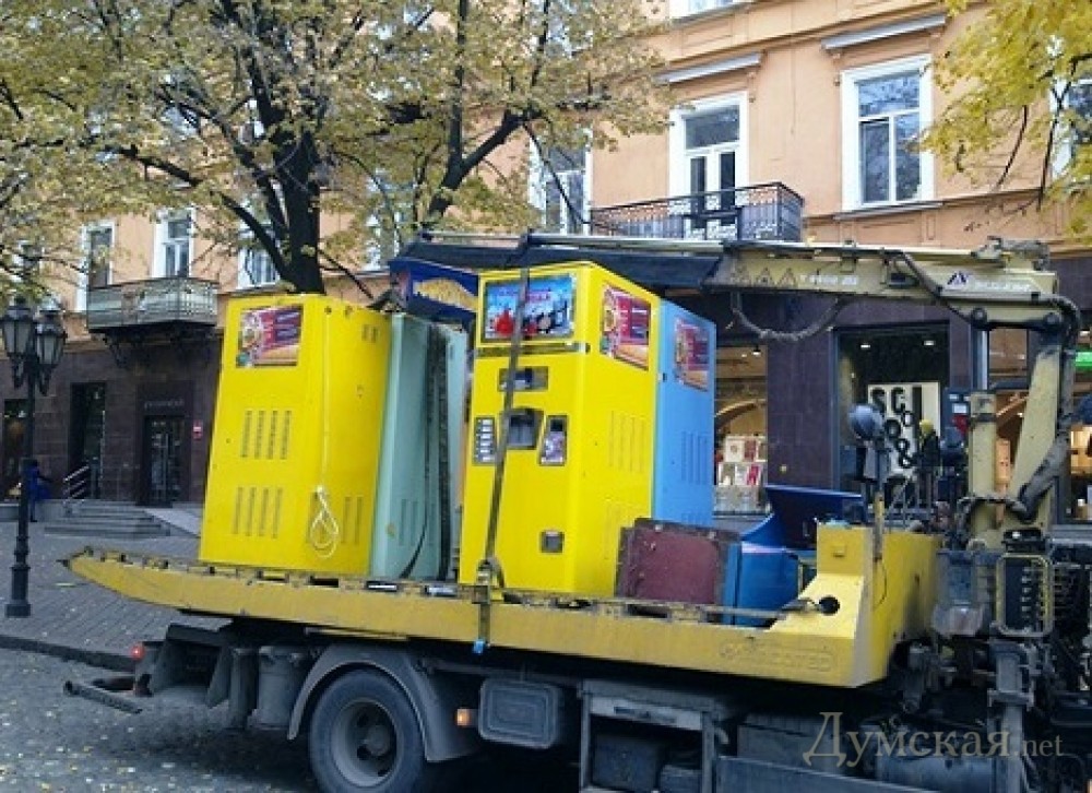 На Дерибасовской силами сотрудников городского управления развития потребительского рынка проведен демонтаж незаконных торговых объектов, сообщает пресс-служба мэрии. Так, по решению исполкома №861 от 16 августа на штрафплощадку вывезли четыре аппарата с газированной водой, один терминал пополнения счета и один аттракцион. В мэрии подчеркнули, что эти объекты «были размещены без согласовательных документов». Как сообщала «Думская», автоматы с газировкой появились на Дерибасовской больше года назад. СМЕРТЬ РОСІЙСЬКИМ ОКУПАНТАМ! Помітили помилку? Виділяйте слова з помилкою та натискайте control-enter |