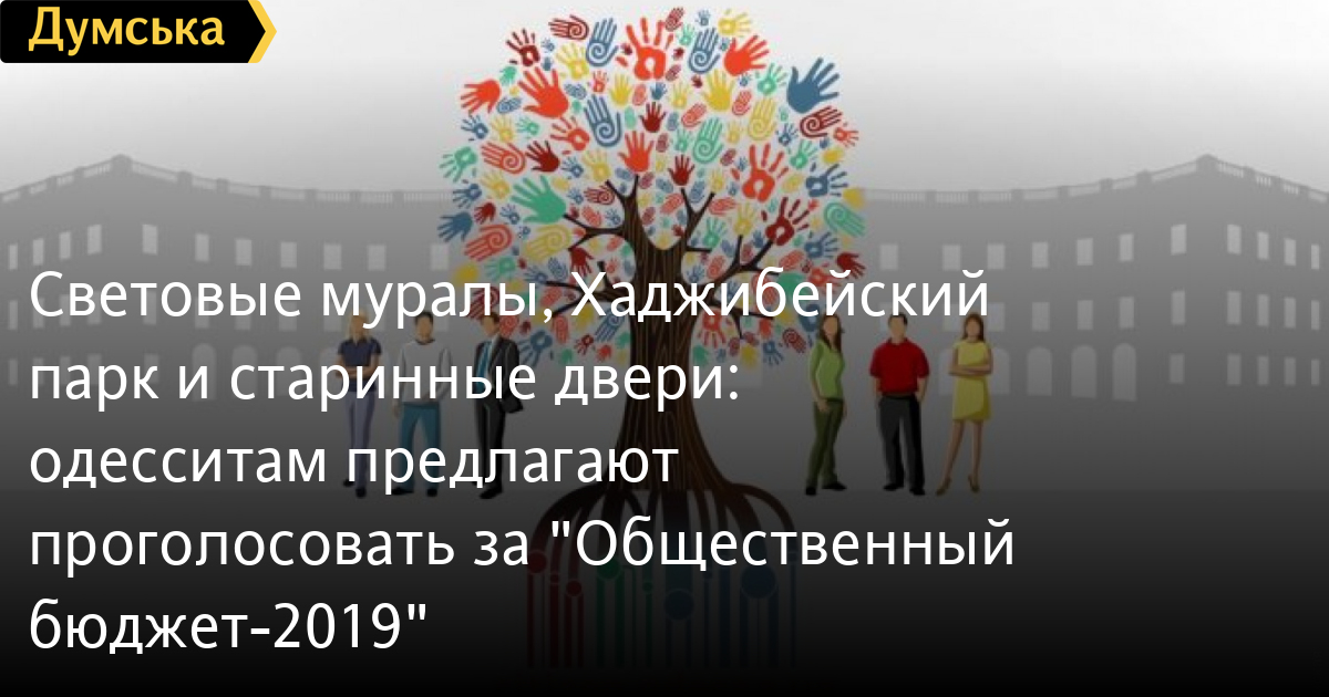Прием проектов общественного бюджета города Одессы на 2019 год проходил с 20 августа по 28 сентября 2018 года. В электронной системе было зарегистрировано 106 проектов, поданных одесситами, 95 из которых соответствуют необходимым требованиям. Ряд проектов был доработан с учетом замечаний профильных департаментов горсовета.