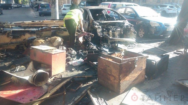 В ночь на 15 июня на автостоянке по Базарной произошел пожар — сгорела будка охранника и три легковых автомобиля. Как удалось выяснить, причиной возгорания стал поджог — неизвестный мужчина бросил бутылку с зажигательной смесью.