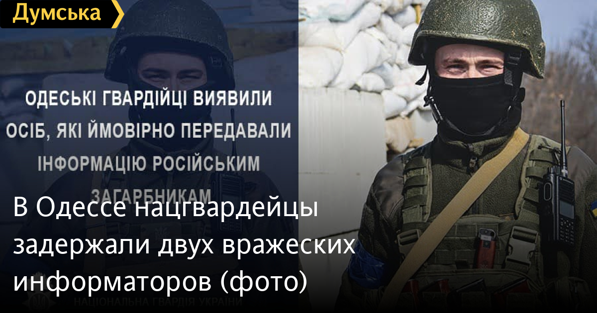 Военнослужащие 11-й бригады Национальной гвардии Украины им. Михаила Грушевского задержали у одного из блокпостов в Одессе двух гражданских, которые из машины снимали позиции защитников города.