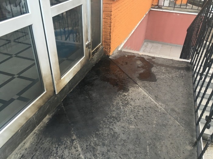 Дверь облили горючей смесью и подожгли. Никто не пострадал.