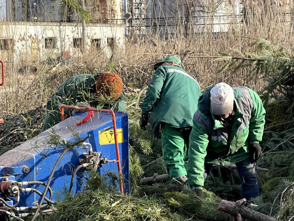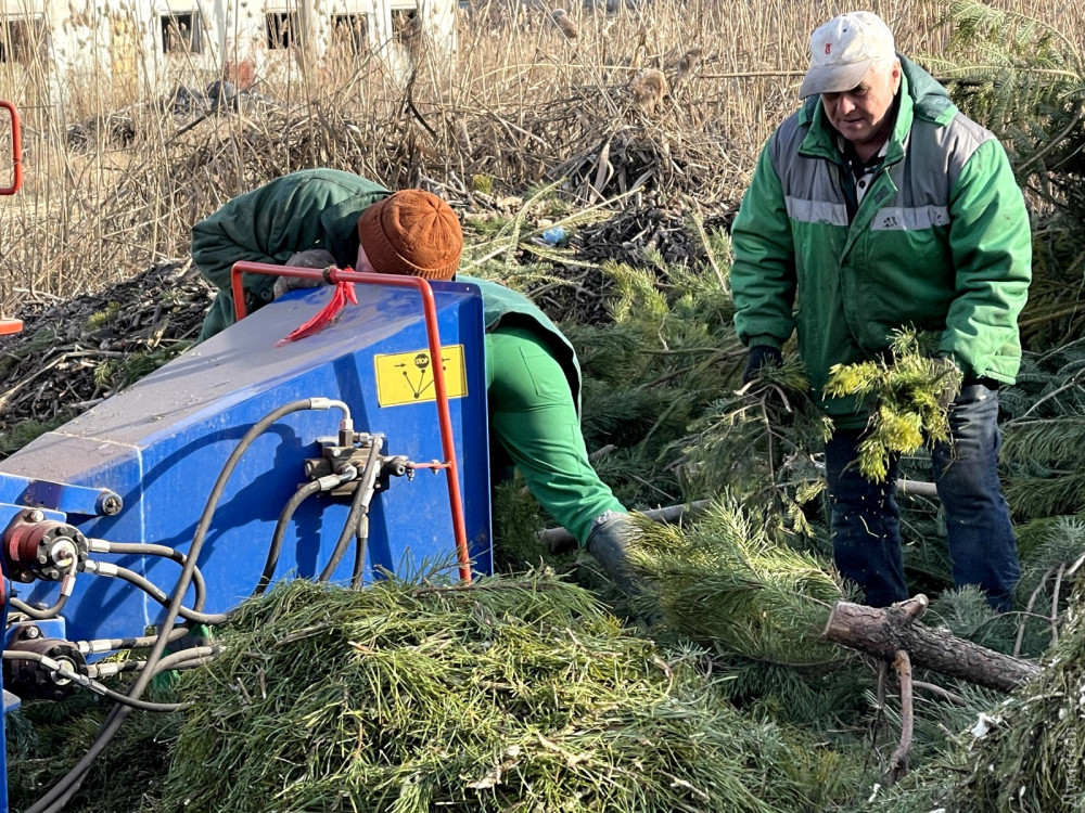 Переработкой елок и сосен, не распроданных перед Новым годом, занялись работники коммунального предприятия «Горзелентрест».