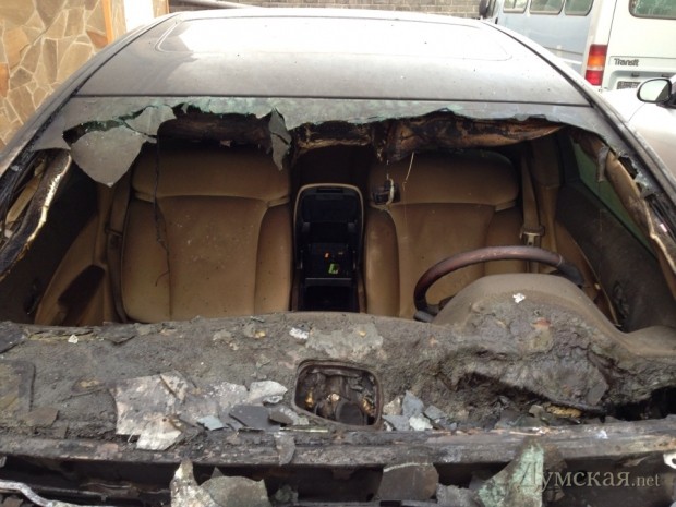 Прибывшие на место спасатели и милиционеры пришли к выводу, что автомобиль, скорее всего, был умышленно подорван.Об этом также свидетельствуют внешние повреждения автомобиля – разбитое лобовое стекло и сдвинутое от взрыва крыло автомобиля.