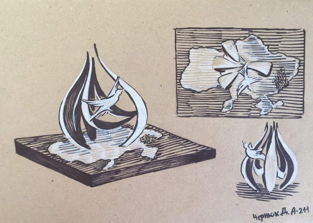 Доцент кафедры «Основы архитектуры и дизайна архитектурной среды» ОГАСА Виктор Токарь представил несколько проектов мемориала, подготовленных студентами вуза. Еще один проект прислал внештатный советник министра культуры по вопросам формирования военной политики и взаимодействия с военными подразделениями старший лейтенант Александр Канибора.