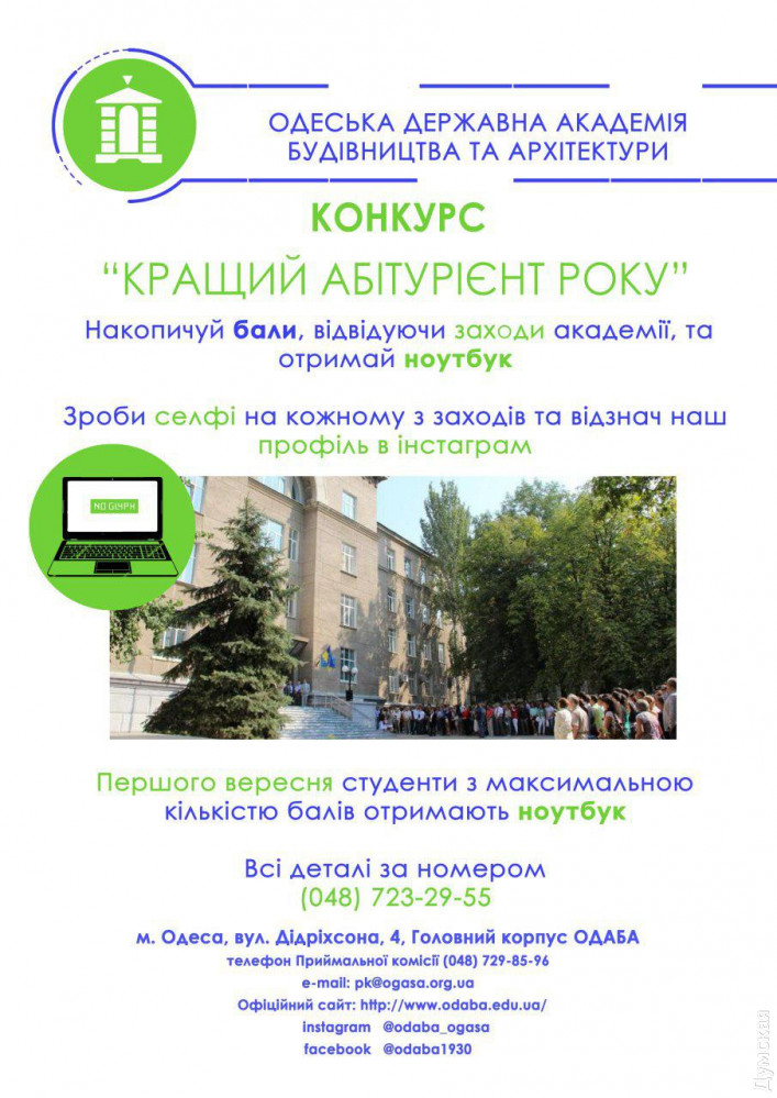 Лучшего абитуриента года определит перед новогодними праздниками Одесская государственная академия строительства и архитектуры.