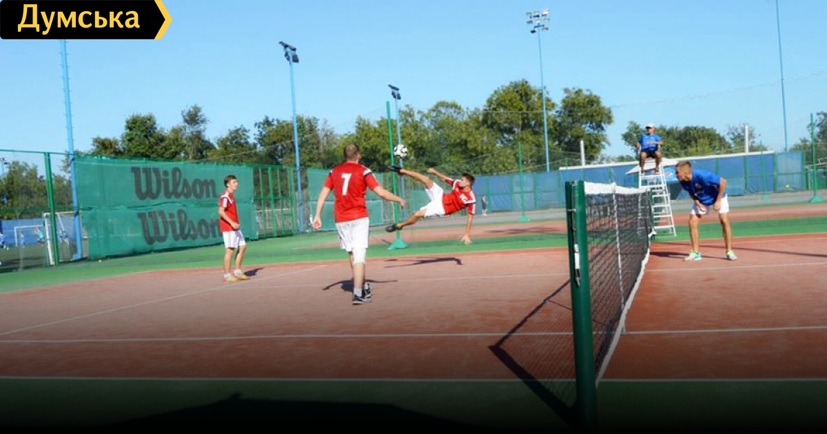 На кортах теннисного клуба «Черноморец» в Отраде состоялись матчи финального этапа чемпионата Украины по футнету (теннисболу).