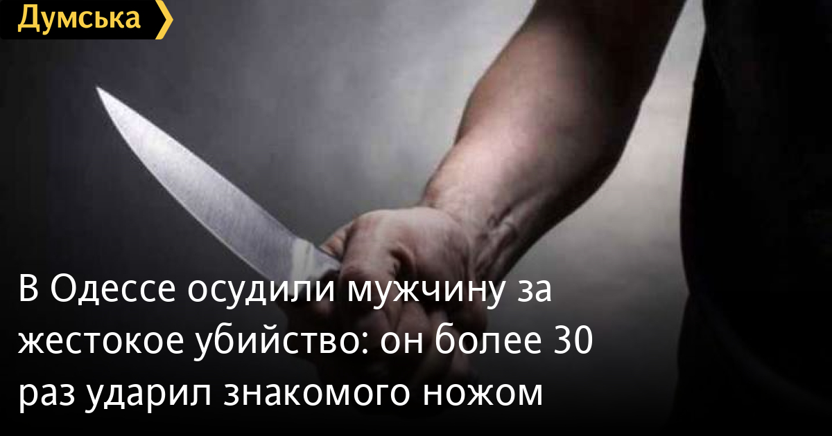 В Одессе осудили мужчину за жестокое убийство: он более 30 раз ударил знакомого ножомСуд приговорил 50-летнего одессита к 14 годам тюрьмы по ч.2 ст.115 УК Украины за умышленное убийство, совершенное с особой жестокостью. Как сообщили в прокуратуре, преступление произошло в начале декабря 2019 года. Во время ссоры со знакомым подсудимый нанес ему более 30 ножевых ранений. От полученных ранений пострадавший скончался на месте. В прокуратуре отмечают, что ранее подсудимый уже был судим за убийство. Во время суда он полностью отрицал свою причастность к жестокому убийству. СМЕРТЬ РОССИЙСКИМ ОККУПАНТАМ! Заметили ошибку? Выделяйте слова с ошибкой и нажимайте control-enter Новости по этой теме: 4 августа 2025: Экспертизу не сделали, камеры не отсмотрели: одесские волонтеры жалуются на саботаж полиции в расследовании убийства собаки 29 июля 2025: В Усатово Одесской области произошла перестрелка: полиция работает на месте (видео, обновлено) 28 июля 2025: Пьяный на «Ягуаре» или гипертоник? Уволенный топ-чиновник одесской полиции хочет вернуться на службу 19 июня 2025: Девочку, которую искали сотни одесситов, нашли убитой: полиция работает с мужчиной, вероятно, причастным к гибели |