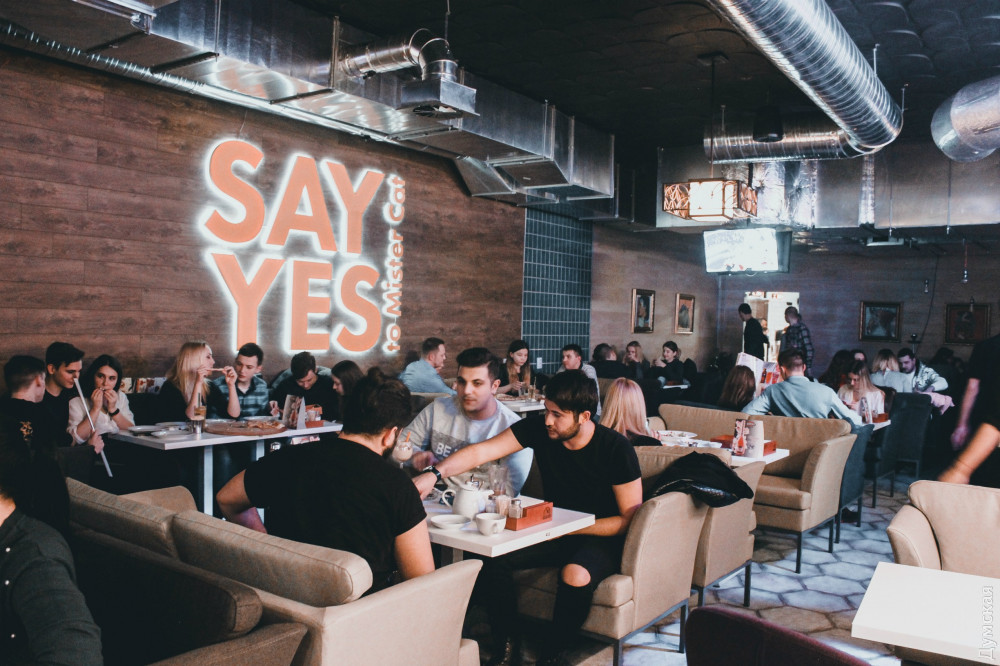 «Всем знакома дилемма выбора места заведения, особенно когда большая компания и один хочет коктейль, второй постится, третий не прочь хлебнуть пивка, а его - девушка спеть в караоке, как в последний раз. И вот вы сидите два часа и выбираете место, которое подойдет всем. А в пиццерии Mister Cat все это есть! Тем более, что вряд ли кто-то сможет отказаться от двух пицц по цене одной. Еще очень круто, что Mister Cat работает круглосуточно и можно прийти компанией в 3 часа ночи, выпить, покушать, покурить кальян и просто весело провести время. Пиццерия Mister Cat обещает постоянные вечеринки с диджеями, МС и тематическими вечеринками», — сообщает заведение.