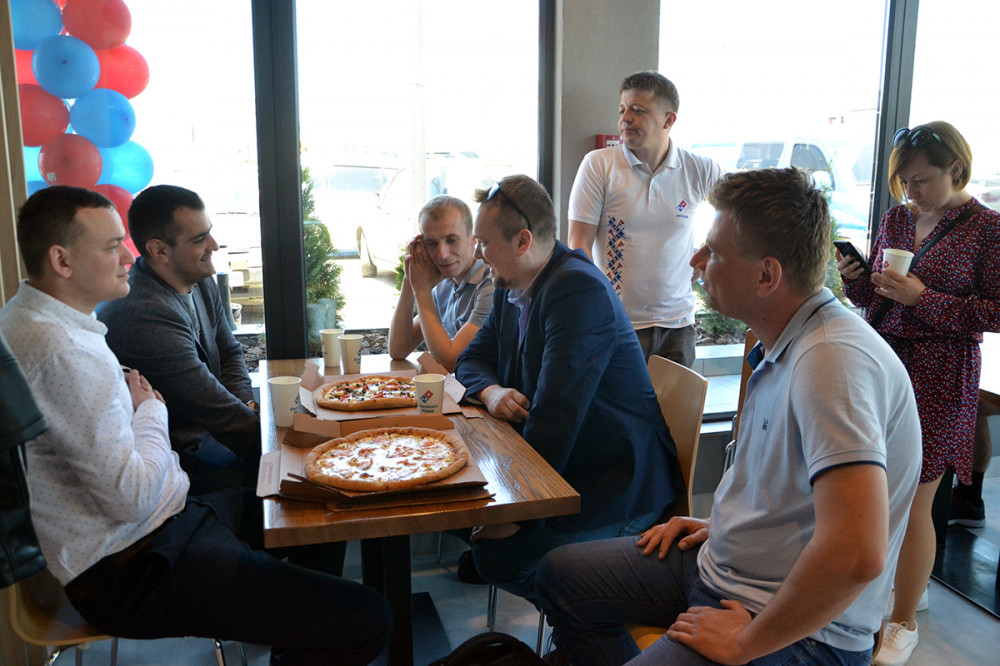 Торжественное открытие пиццерии началось с традиционного разрезания красной ленты руководством сети Domino’s Pizza Odessa. После чего всех гостей пригласили в зал отведать фирменные блюда.