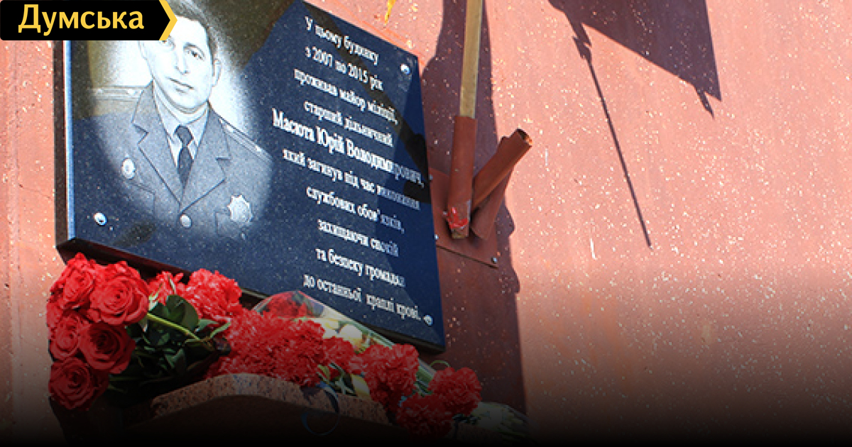В Одессе открыли мемориальную доску в память об участковом Красносельского отделения милиции Юрии Масюте, который погиб в августе прошлого года при исполнении служебных обязанностей. Доска появилась на стене дома, где жил офицер. Майор пришел к заявителю, чтобы проверить жалобу на угрозы со стороны супруги. Во время беседы гражданин неожиданно напал на правоохранителя с ножом, ранив его в шею. Милиционер скончался в карете скорой помощи. В органах внутренних дел Юрий Масюта — с 2004 года. До этого он отдал 15 лет Вооруженным силам Украины. СМЕРТЬ РОСІЙСЬКИМ ОКУПАНТАМ! Помітили помилку? Виділяйте слова з помилкою та натискайте control-enter Новини по цій темі: 29 липня 2025: В Усатово Одеської області сталася перестрілка: поліція працює на місці (відео, оновлено) 28 липня 2025: П'яний на "Ягуарі" або гіпертонік? Звільнений топ-посадовець одеської поліції хоче повернутися на службу 19 червня 2025: Дівчинку, яку шукали сотні одеситів, знайшли вбитою: поліція працює з чоловіком, ймовірно причетним до загибелі 27 травня 2025: Увели гектар в університету: на Одещині засудили земельних аферистів, але без посадки і Хвоста |
