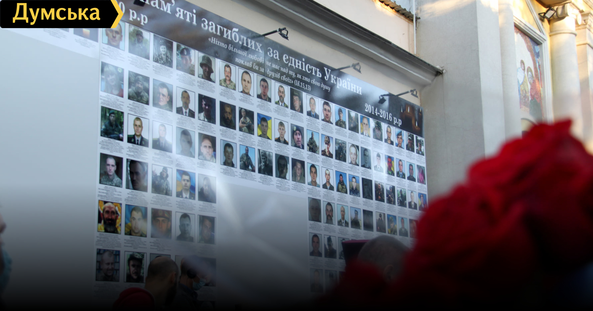 Стену памяти с фотографиями украинских военнослужащих и добровольцев, погибших на фронте российско-украинской войны в 2014-2020 годах, открыли вчера, в День защитника Украины, возле кафедрального собора Рождества Христова Православной церкви Украины на улице Пастера.