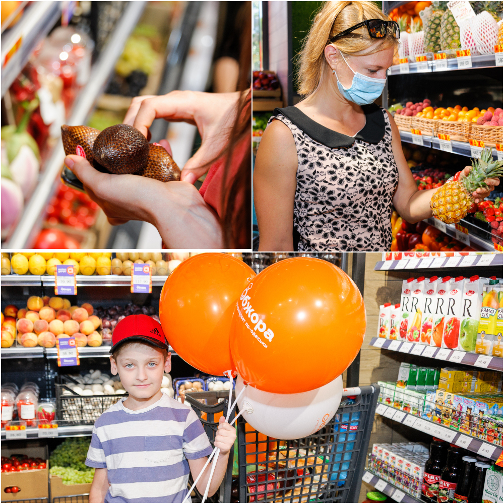 «В нем сразу обращаешь внимание на цвет, материалы и удобство пространства: широкие ряды, где могут легко разминуться тележки; все отделы отмечены яркими надписями, так что легко найти любой товар, не потратив много времени; а полки с продуктами наполнены большим выбором торговых марок каждой группы товаров — здесь точно найдете любимый йогурт и сорт винограда, при этом товаров одной линейки немного. Именно такой подход позволяет супермаркету гордиться всегда свежими продуктами на прилавке, заказывая у поставщиков и на собственных производствах небольшое количество продуктов ежедневно», — отмечают в компании.