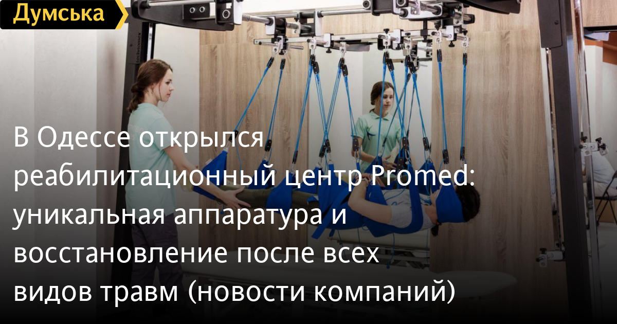 В Одессе открылся реабилитационный центр Promed: уникальная аппаратура и восстановление после всех видов травм (новости компаний)На Неделина, 78 открылся реабилитационный центр Promed — единственное заведение в городе, в котором можно пройти действительно результативную реабилитацию после различных заболеваний, травм или хирургических вмешательств. В центре рассказывают, что он оснащен высокотехнологичным оборудованием, аналогов которому в стране просто нет, благодаря которому можно быстро и качественно восстановить уровень физической активности и свести к минимуму период нетрудоспособности. Более того, ранее восстановление позволит избежать многих нежелательных последствий, таких как хронические заболевания. Раннее послеоперационное восстановление — ключевое направление центра. Специальная аппаратура в реабилитационном зале для двигательной терапии поможет безопасно восстановиться при любых состояниях, требующих двигательную терапию. Одна из «изюминок» центра — локомоторная станция locomotion 150/50 DE med H/P COSMOS (Германия), которая объединяет в себе множество функций, обладая как терапевтическими, так и диагностическими возможностями. В первую очередь, это широкая беговая дорожка с пандусом, на который может заехать инвалидная коляска. Для пациентов с ограниченной функцией опоры встроена динамическая система пневматической разгрузки веса, которая позволяет полностью разгрузить кости и суставы. Больше двадцати режимов программ позволяет тренировать ходьбу не только вперед, а и назад, вбок, на подъем и на спуск. В центре есть комплекс тренажеров с пневматическим сопротивлением En-Dynamic от лидера рынка аппаратуры для реабилитации компании Enraf-Nonius (Нидерланды). Их уникальность в том, что сопротивление создается не металлическими грузами, а давлением сжатого воздуха, которое контролируется встроенным компьютером с невероятной точностью. При занятиях на этих тренажерах исключается нагрузка на связочный аппарат и суставы, что особенно важно при их повреждениях. Каждое занятие составляется индивидуально под человека, создаётся ключ-карта клиента, в которую вносятся данные о тренировке для дальнейшего анализа. Бассейн центра оборудован подвесной системой для обучения ходьбе пациентов с проблемами опорно-двигательного аппарата. Благодаря ей можно восстановить двигательную активность людям с острыми болевыми синдромами и срастающимися повреждениями костей и мягких тканей, время нетрудоспособности значительно сокращается и не утрачивается стереотип движений. Эффект встречного потока воды помогает пройти более интенсивно-функциональный тренинг и выполнять упражнения для улучшения координации и скоростных показателей. Для пациентов с патологиями сердечно-сосудистой и дыхательной систем одна из важнейших задач — восстановить функции дыхания и насыщения крови кислородом. Добиться эффективного результата помогает интервальная гипокситерапия на аппарате ReOxy. Процедура заключается в подаче воздушной смеси в индивидуальный дыхательный контур интервалами с пониженным и повышенным содержанием кислорода. Технология SRT® (Self Regulated Treatment) основана по принципу биологической обратной связи: выбор параметров воздействия корректируется, исходя из показателей организма человека. В процессе курса пациент адаптируется к