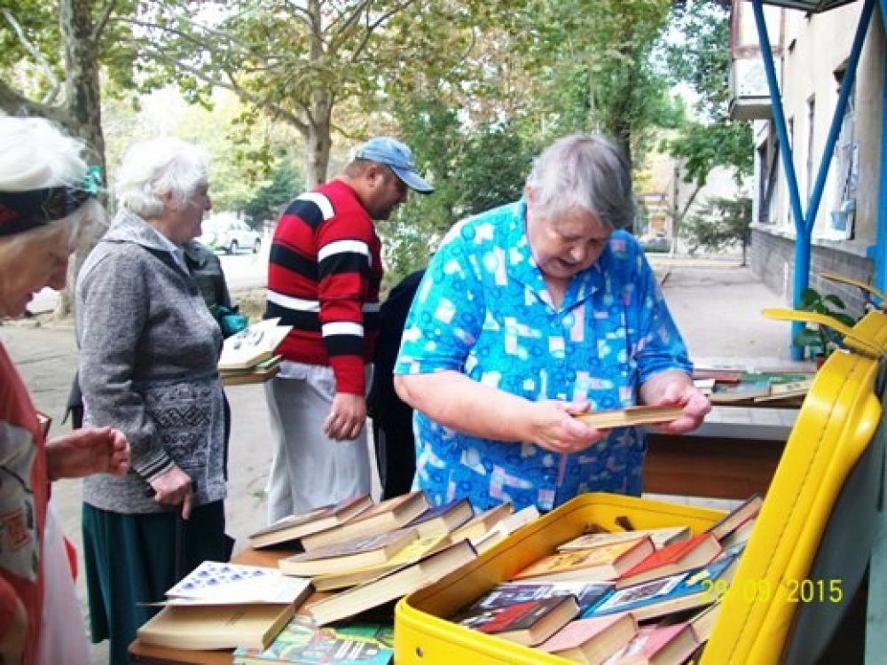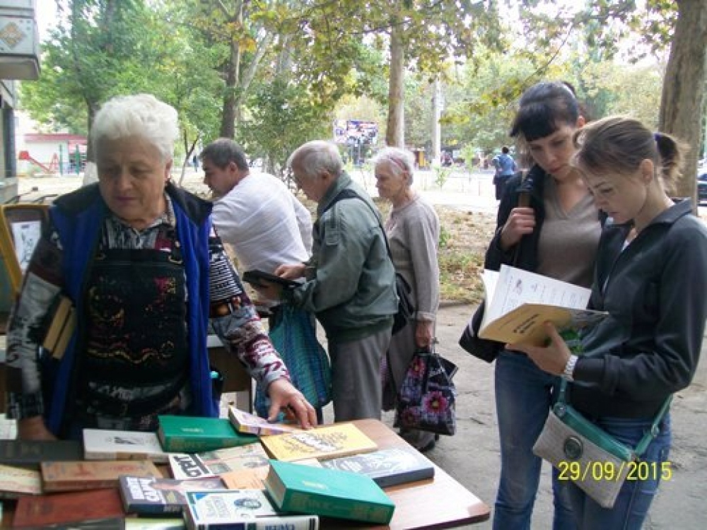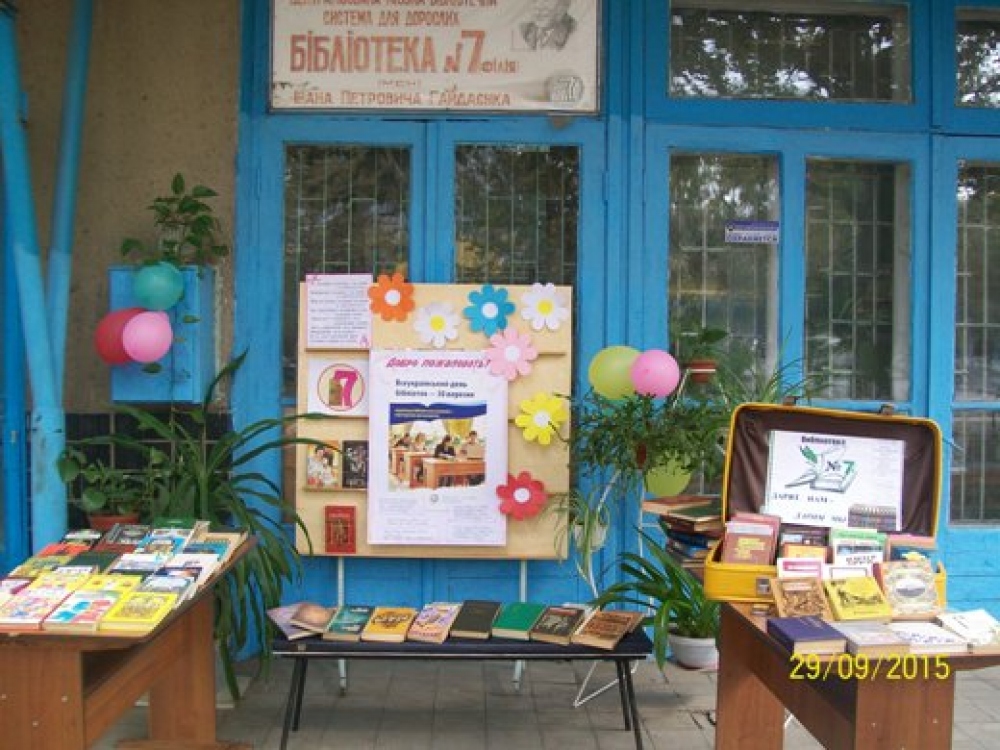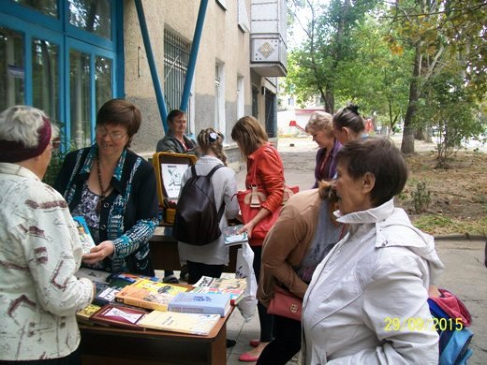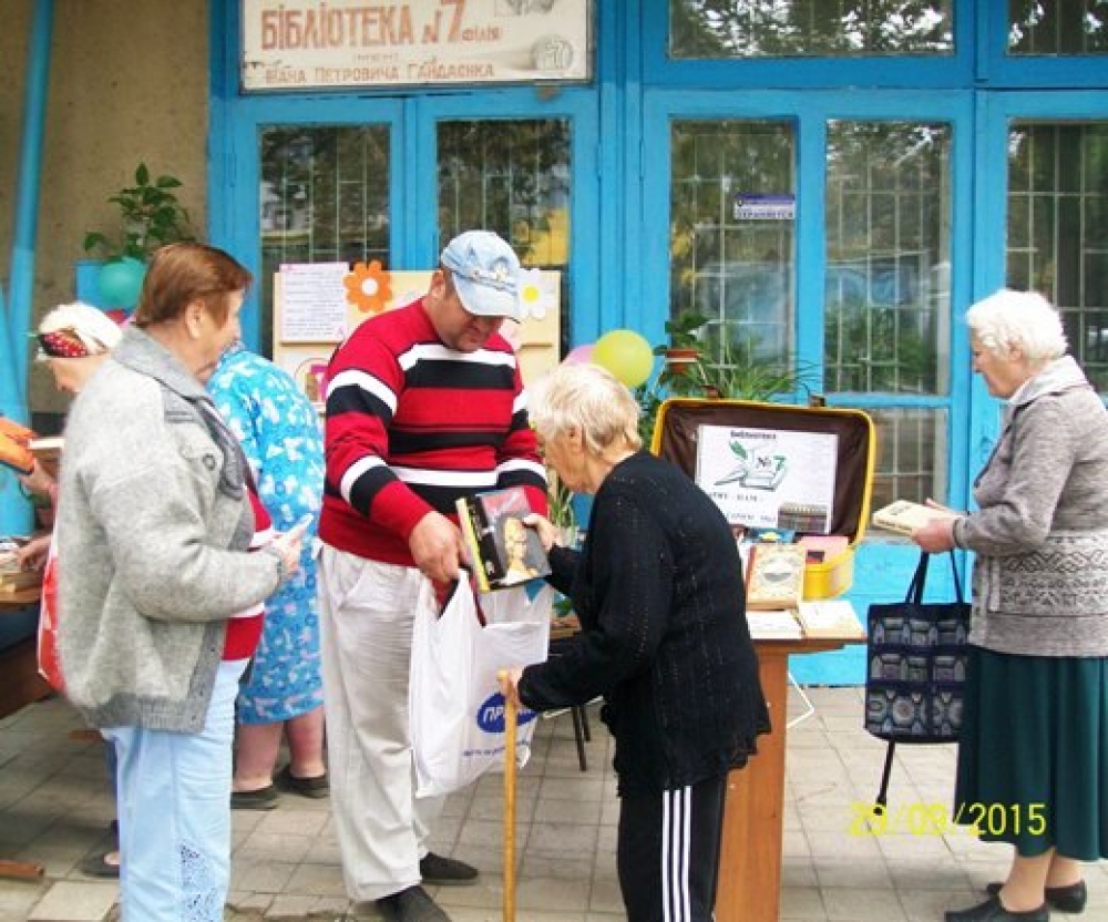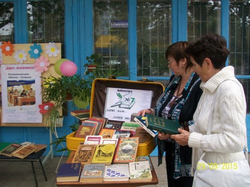 По случаю Всеукраинского дня библиотек сотрудники библиотеки №7 имени Ивана Гайдаенко, что на улице генерала Бочарова, провели для жителей поселка Котовского Книжный фестиваль. Мероприятие проходило под девизом: «Каждому читателю — книга, каждой книге – читателя». У входа в библиотеку разместили стенды и столы с книгами, которые украсили цветами и шарами, а также целый чемодан с книгами-подарками, которые вручали и детям, и взрослым. Дошколятам дарили сказки, рассказы, энциклопедии, школьникам – учебники и хрестоматии по украинской и зарубежной литературе, а люди преклонного возраста, кроме книг, получили от библиотекарей внимание и общение, а также приглашение в литературный клуб «Вдохновение», который уже не один год действует при библиотеке. Фото пресс-службы горсовета