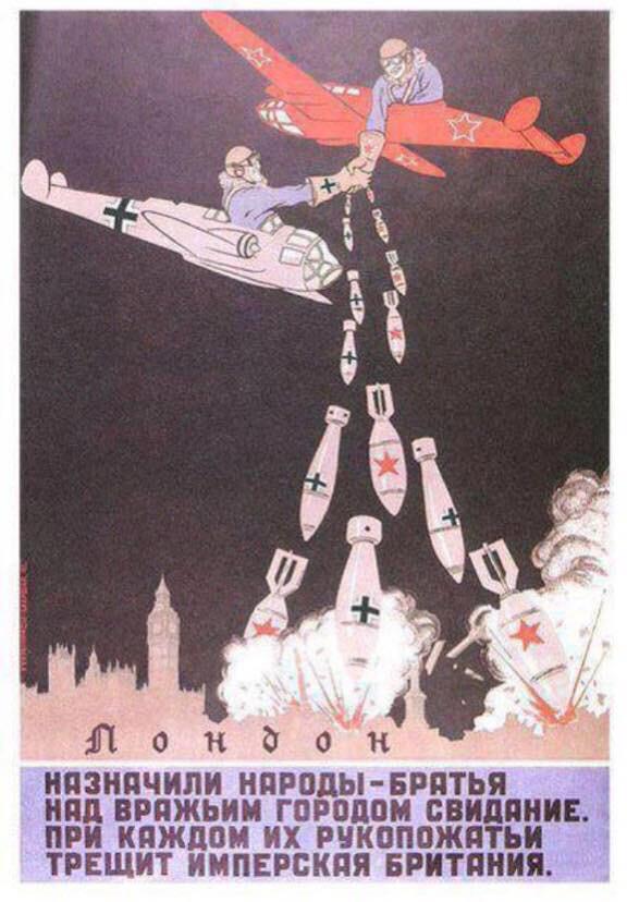 РККА не только сотрудничала после начала Второй мировой, она ВМЕСТЕ с фашистским вермахтом напала на Польщу. Как союзники. Т.е. Красная армия — союзник фашистской Германии во второй мировой войне с её начала. Пока не поссорились спустя 2 года. А вот британцы сразу объявили войну Германии после нападения на Польшу.