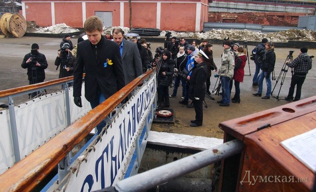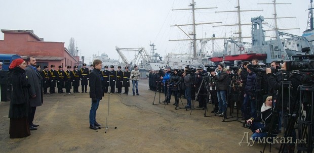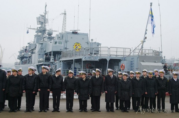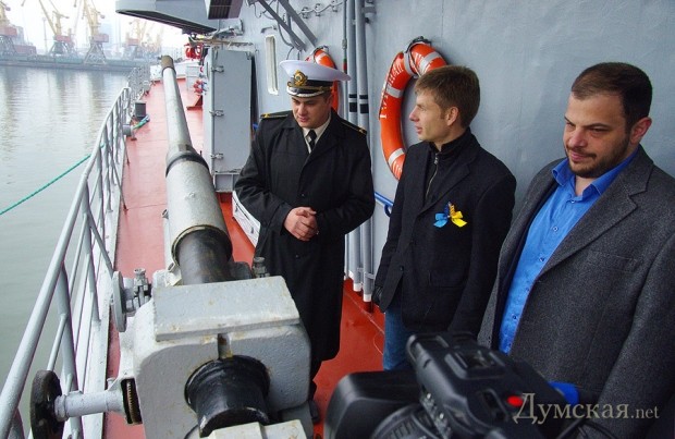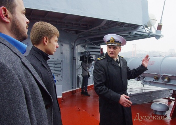 После возложения цветов, минуты молчания и нескольких концертных выступлений командир флагмана провел для гостей экскурсию по гордости украинского флота. На борт корабля поднялись нардеп Алексей Гончаренко, глава областного совета Михаил Шмушкович и представительница крымско-татарского народа Мирьем Джемилева. Племянница Мустафы Джемилева рассказала журналистам, как жизнь в России для крымчан начала оборачивается катастрофой.