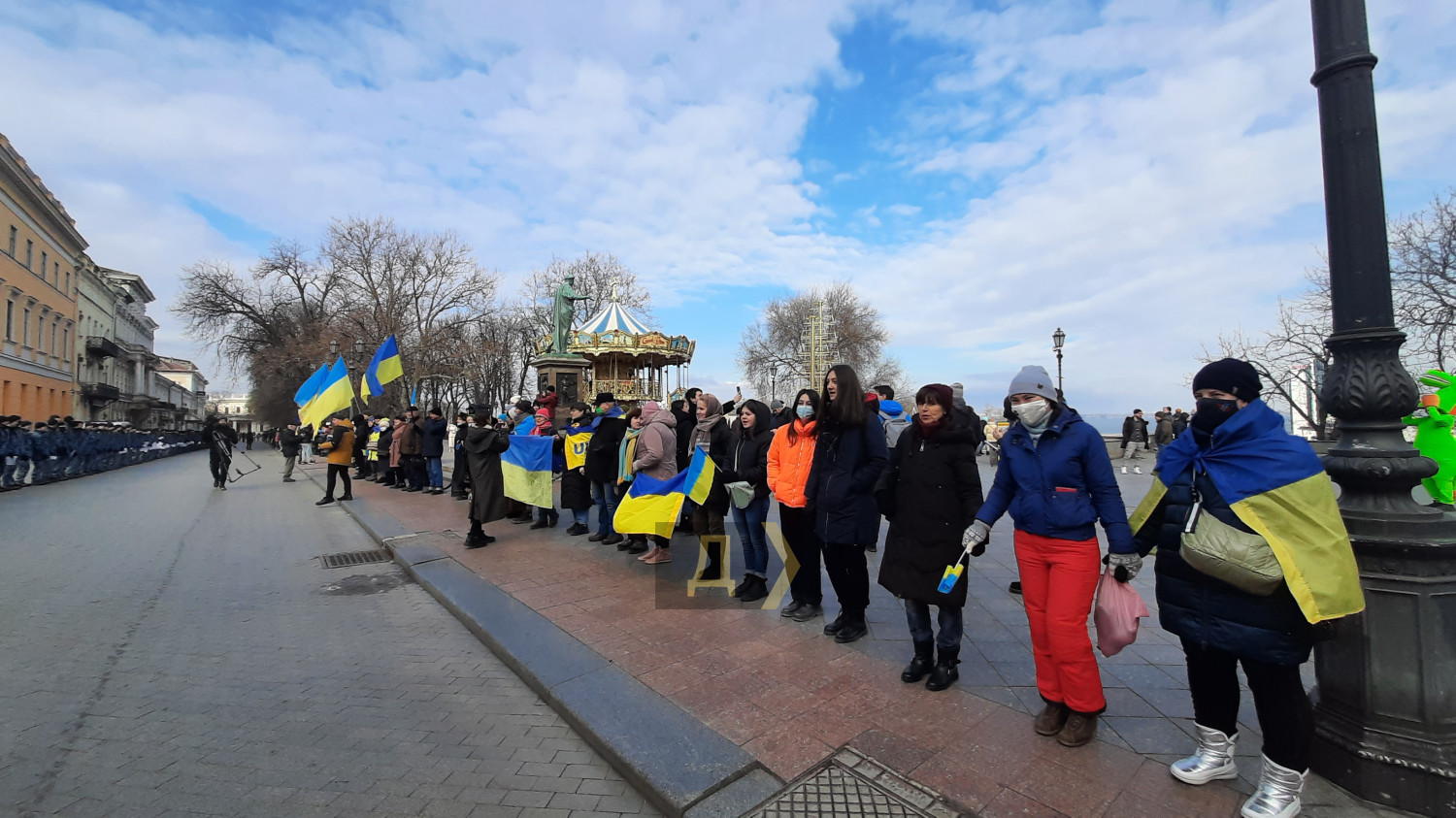День Cоборности Украины: одесские курсанты выстроились в надпись «Разом» около ДюкаСегодня на Приморском бульваре по случаю празднования Дня Соборности Украины возле памятника Дюку де Ришелье курсанты Института военно-морских сил Национального университета «Одесская морская академия», Одесской военной академии и Одесского государственного университета внутренних дел выстроились в надпись «Разом». Как передает корреспондент «Думской», акция проходила при поддержке Центра патриотического воспитания. По словам организатора акции Натальи Михайленко, основной посыл мероприятия – показать всем, что украинцы едины. «Наша сила в единстве, и с помощью этой фигуры мы еще раз напоминаем, что украинцы вместе, мы «Разом», с нашими вооруженными силами», — подчеркнула Наталья Михайленко. Также в ходе акции ее участники выстроились в живую цепь на Приморском бульваре и скандировали: «Разом і до кінця», «Слава Україні – героям слава», «Слава Збройним силам України», «Слава нації – смерть ворогам». По окончании акции все участники спели гимн Украины. Фото, видео — Андрей Колисниченко СМЕРТЬ РОСІЙСЬКИМ ОКУПАНТАМ! Помітили помилку? Виділяйте слова з помилкою та натискайте control-enter |