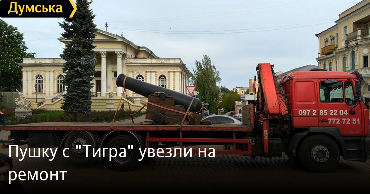 Специалисты по вопросам охраны культурного наследия Одесского горсовета демонтировали для проведения текущего ремонта знаменитую пушку с британского пароходофрегата «Тигр», установленную на Думской площади.