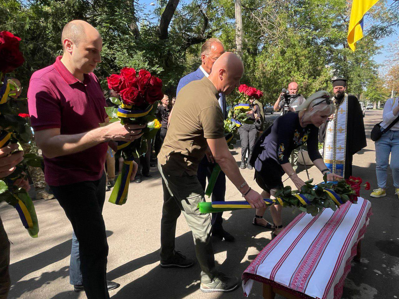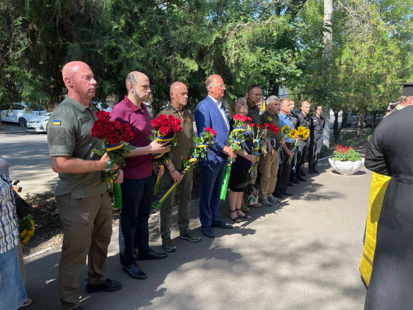 В Одесі відслужили панахиду та поклали квіти на пам`ять про загиблих захисників УкраїниЗ нагоди Дня пам'яті захисників, які загинули у боротьбі за незалежність, суверенітет та територіальну цілісність України, який наша країна відзначає 29 серпня, в Одесі поклали квіти до Стіни пам'яті та відслужили поминальну панахиду. У церемонії взяли участь керівники міста та області, представники різних родів військ Збройних Сил України, духовенство та громадськість. Присутні вшанували пам'ять загиблих захисників України хвилиною мовчання. Фото пресслужби Одеської міськради СМЕРТЬ РОСІЙСЬКИМ ОКУПАНТАМ! Помітили помилку? Виділяйте слова з помилкою та натискайте control-enter |