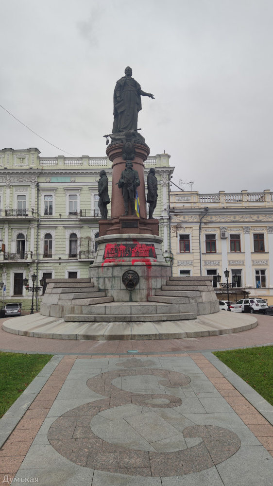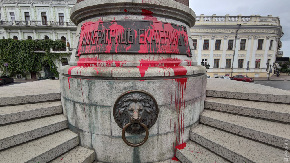 Вже втретє за останні дні одеський пам'ятник російській імператриці Катерині II зазнав проявів народного «кохання».