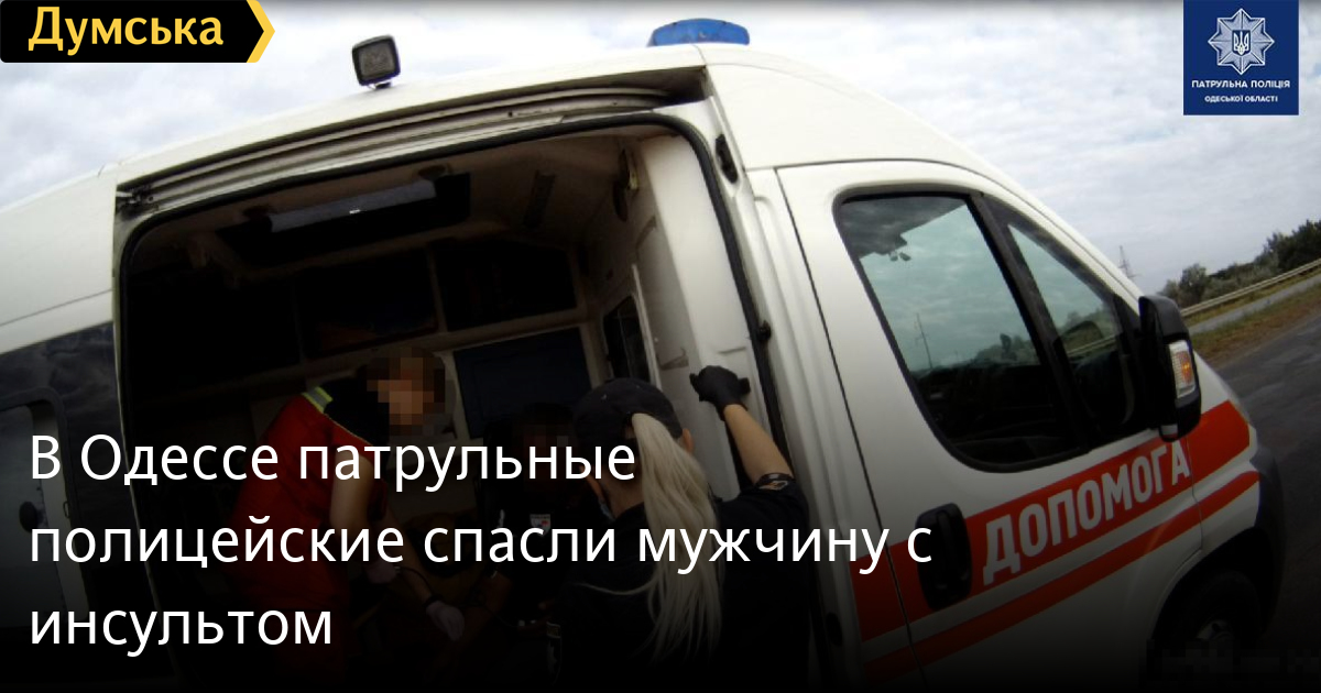 Одесские сотрудники патрульной полиции, направляясь на дежурство, утром 9 августа оказали помощь прохожему, у которого произошел инсульт. Как сообщили в полиции, инспекторы обратили внимание на мужчину, который шел неустойчивой походкой по проезжей части. Он рассказал полицейским, что почувствовал себя плохо в автобусе и вышел на воздух. У мужчины была нарушена координация движений и речь, поэтому ему вызвали скорую помощь. Врачи поставили диагноз инсульт и забрали пациента в больницу. СМЕРТЬ РОССИЙСКИМ ОККУПАНТАМ! Заметили ошибку? Выделяйте слова с ошибкой и нажимайте control-enter Новости по этой теме: 29 июля 2025: В Усатово Одесской области произошла перестрелка: полиция работает на месте (видео, обновлено) 28 июля 2025: Пьяный на «Ягуаре» или гипертоник? Уволенный топ-чиновник одесской полиции хочет вернуться на службу 19 июня 2025: Девочку, которую искали сотни одесситов, нашли убитой: полиция работает с мужчиной, вероятно, причастным к гибели 27 мая 2025: Увели гектар у университета: на Одесчине осудили земельных аферистов, но без посадки и Хвоста |
