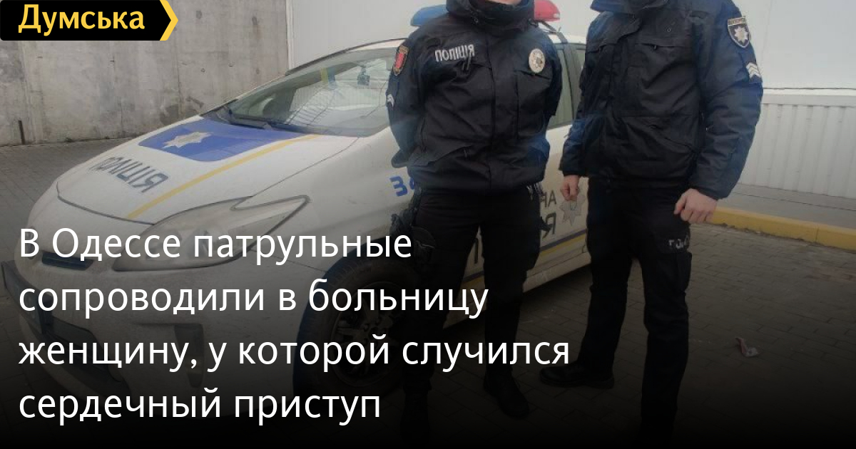 В Одессе патрульные сопроводили в больницу женщину, у которой случился сердечный приступПатрульные полицейские обеспечили кортеж для машины, в которой женщина везла свою мать с симптомами сердечного приступа в больницу. В ведомстве сообщили, что инцидент произошел на Тираспольском шоссе. Автомобилистка переживала, что может не успеть довезти пациентку к врачам. Патрульные откликнулись на просьбу и сопроводили машину в медучреждение. СМЕРТЬ РОСІЙСЬКИМ ОКУПАНТАМ! Помітили помилку? Виділяйте слова з помилкою та натискайте control-enter Новини по цій темі: 29 липня 2025: В Усатово Одеської області сталася перестрілка: поліція працює на місці (відео, оновлено) 28 липня 2025: П'яний на "Ягуарі" або гіпертонік? Звільнений топ-посадовець одеської поліції хоче повернутися на службу 19 червня 2025: Дівчинку, яку шукали сотні одеситів, знайшли вбитою: поліція працює з чоловіком, ймовірно причетним до загибелі 27 травня 2025: Увели гектар в університету: на Одещині засудили земельних аферистів, але без посадки і Хвоста |