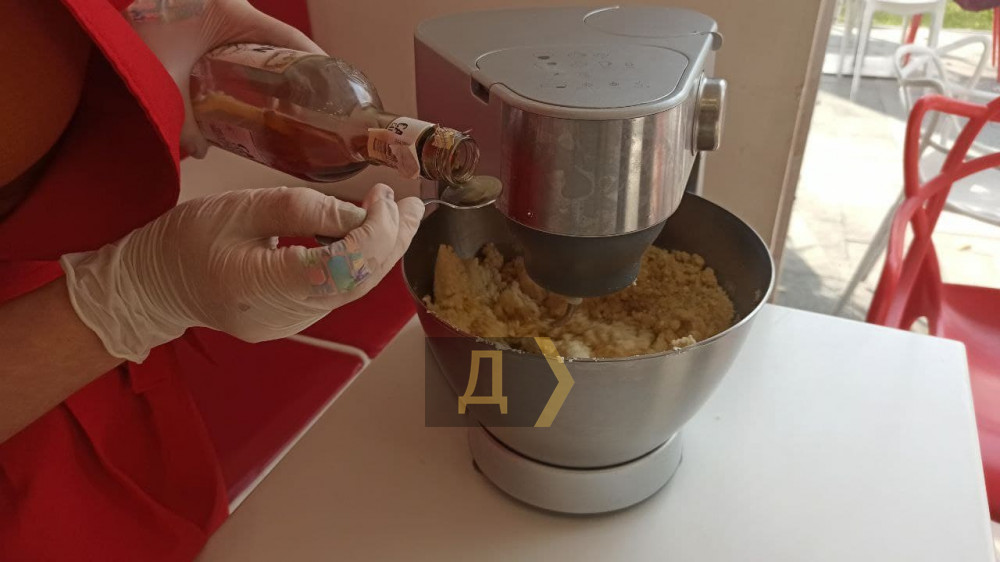 Представляя себе создание самого большого штоллена, мы рисовали себе в уме производство каких-то невиданных промышленных масштабов, с гигантскими печами и противнями, где десятки кондитеров засыпают в огромный чан тазики орехов и цукатов. На деле же, кекс пекут две девушки в крафтовом кафе на центральной аллее Аркадии. Будущий штоллен они будут собирать из сотен заготовок, поэтому для производства им достаточно небольшого стола, комбайна для замеса теста и печки.