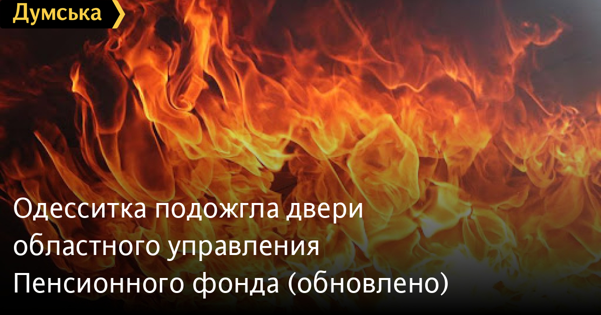 Двери облила легковоспламеняющейся жидкостью и подожгла жительница Одессы — пенсионерка. Прибывшей полиции женщина объяснила свои действия тем, что недовольна мизерной пенсией. У поджигательницы изъяли бутылку с остатками горючего вещества.