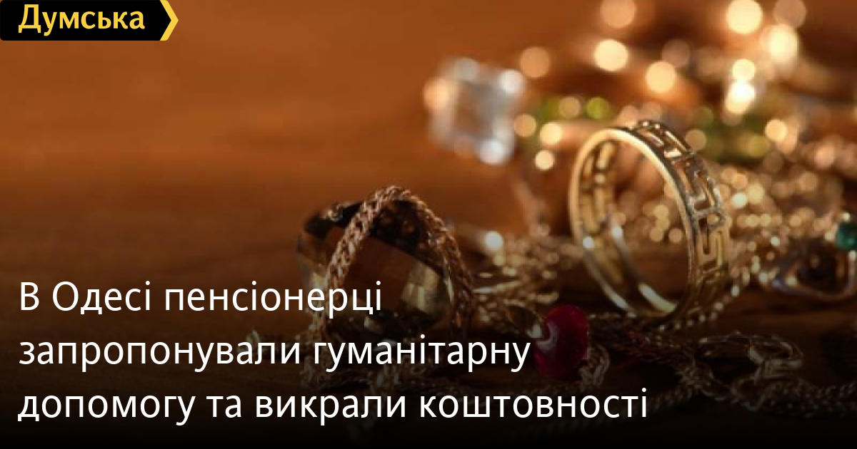 В Одесі пенсіонерці запропонували гуманітарну допомогу та викрали коштовностіОдеситка 1936 року народження залишилася без коштовностей, викрадених невідомими. Як розповіли «Думській» у поліції, крадіжку було здійснено вчора вдень. Додому до пенсіонерки завітали дві жінки, які запропонували їй гуманітарну допомогу. Поки жінка шукала документи, вони забрали золоті вироби та втекли. Правоохоронці відкрили кримінальне провадження за ст. 185 КК України. Помітили помилку? Виділяйте слова з помилкою та натискайте control-enter |