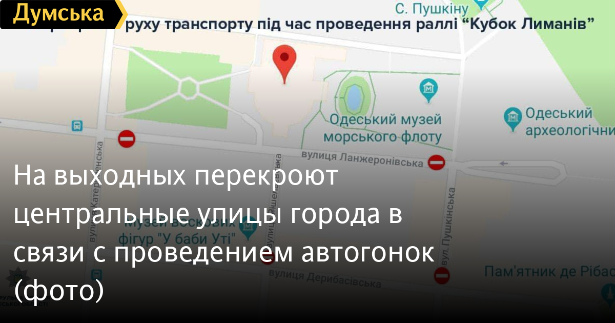 Центральные улицы города в районе Театральной площади будут перекрыты в связи с проведением четвертого этапа чемпионата Украины по мини-ралли «Кубок Лиманов».