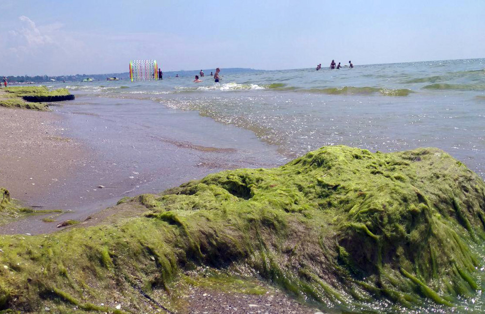 Единственный в Одессе естественный пляж Лузановка буквально завален водорослями.
