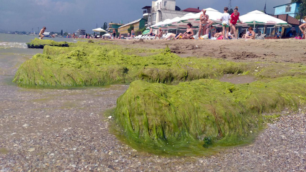 Как передает корреспондент «Думской», водоросли тут везде – и в воде, и на песке, и соответственно на выходящих из воды купальщиках.