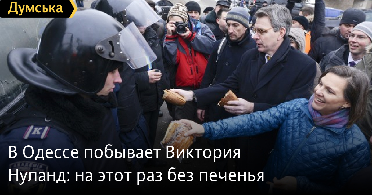 Напомним, Нуланд прославилась в Украине 11 декабря 2013 года, когда посетила Майдан Независимости, где угостила протестующих и милиционеров печеньем и хлебом.