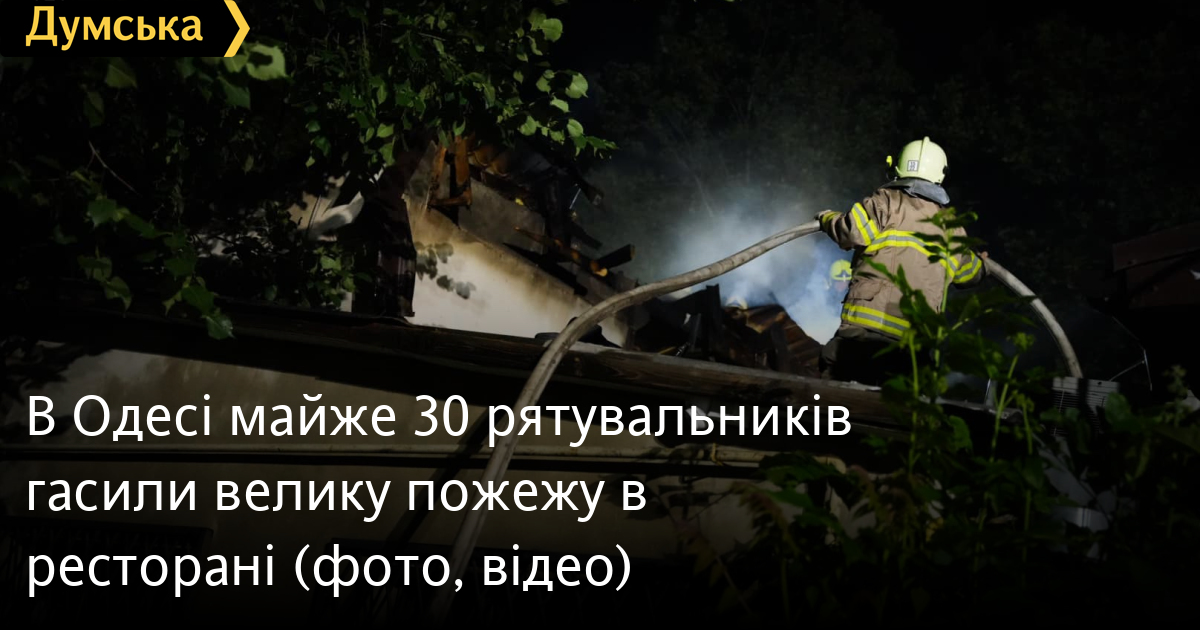 В Одесі майже 30 рятувальників гасили велику пожежу в ресторані (фото, відео)Пожежа у двоповерховій будівлі ресторану на вулиці Академіка Корольова сталася в ніч на 6 червня. Як повідомили у пресслужбі ДСНС Одеської області, горіло майно на загальній площі 150 кв.м. За годину вогонь вдалося локалізувати, а ще за півтори — повністю ліквідувати. На щастя, загиблих і постраждалих немає. Що стало причиною загоряння, поки що невідомо. До гасіння пожежі залучали сім одиниць техніки та 28 рятувальників. Помітили помилку? Виділяйте слова з помилкою та натискайте control-enter Новини по цій темі: 9 жовтня 2025: Нічний удар по Одеській області: постраждали п'ятеро людей, понад 30 тисяч абонентів залишилися без світла 19 серпня 2025: У будівлі коледжу в центрі Одеси виявили труп невідомого 10 червня 2025: Масштабна пожежа у центрі Одеси: ймовірні винуватці спустилися по дереву з третього поверху та намагалися втекти (фото, відео, оновлено) 10 червня 2025: Одесу атакують дрони: дісталося пологовому та житловим будинкам і станції швидкої допомоги (оновлюється, фото) |