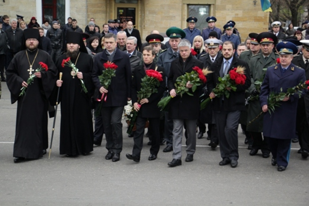 Сегодня, 22 ноября, на Лидерсовском бульваре в Одессе состоялся ритуал возложения цветов и композиций из ржаных и пшеничных колосков к памятному знаку жертвам Голодомора 1932-1933 годов. Как сообщает пресс-служба мэрии, в мероприятии приняли участие руководители города и области, представители районных администраций города, Военно-Морских Сил и Вооруженных Сил Украины, Пограничной службы, духовенство и общественность города. Присутствующие почтили память жертв голодоморов минутой молчания. Возложение традиционно сопровождалось оружейным салютом.