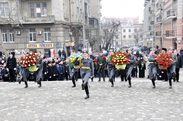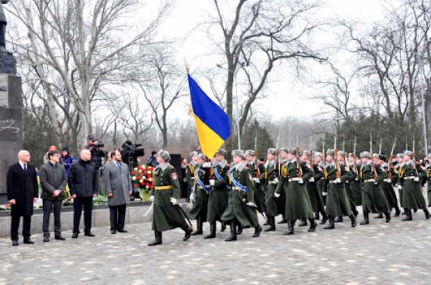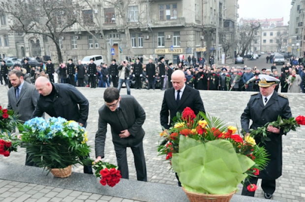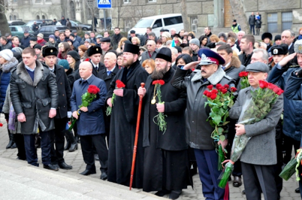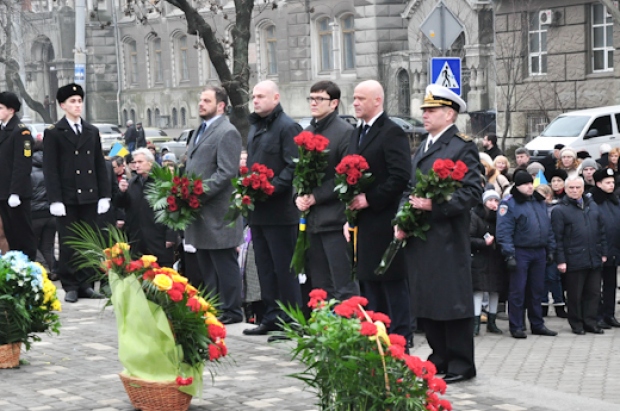 Сегодня, 20 февраля, в Одессе почтили память героев Небесной сотни, погибших во время прошлогодних событий на столичном Майдане. Представители власти и горожане возложили цветы к памятнику Тарасу Шевченко в одноименном парке.
