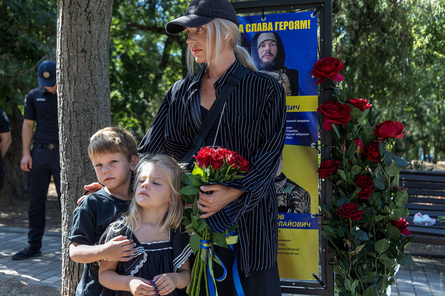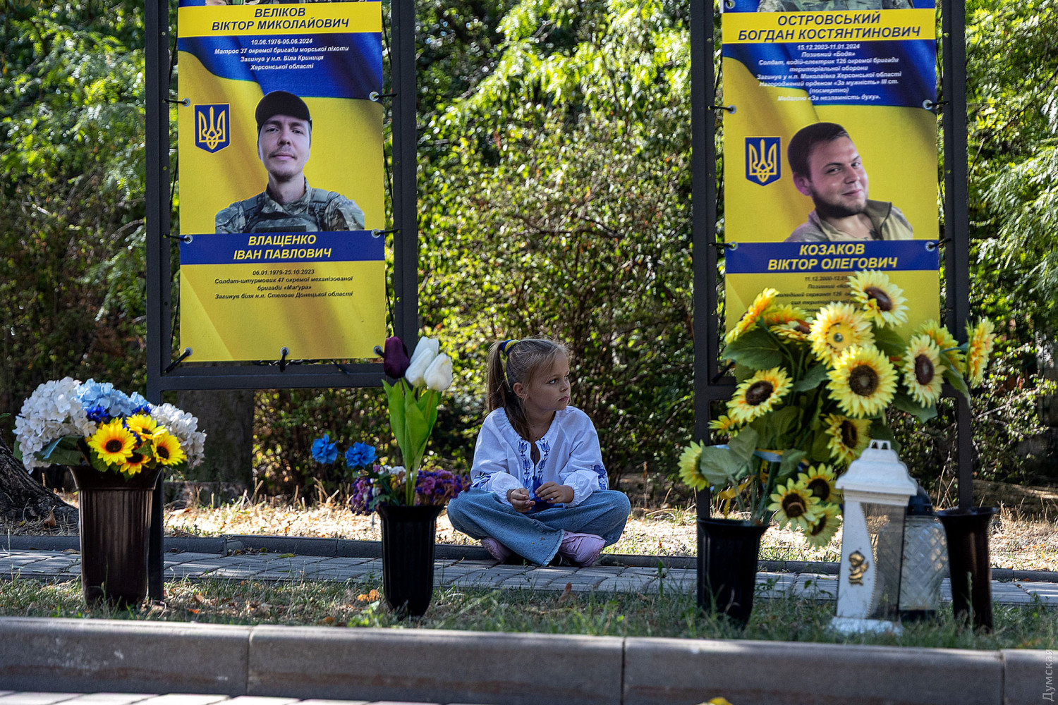 Пам'ять загиблих захисників України вшанували сьогодні, 29 серпня, на Алеї Героїв в одеському парку Шевченка. Цього року тут встановили 82 інформаційні стенди з іменами військовослужбовців. Загалом на меморіальному комплексі увічнено 552 герої. Рідні загиблих, не приховуючи сліз, ділилися спогадами про своїх близьких. Анастасія, дружина військовослужбовця 34-ї бригади берегової оборони Збройних сил України Григорія Звіргзде з позивним «Грінч», розповіла про свого чоловіка. «Гриша спочатку пішов у ТРО, потім перевівся до Херсона. Він займався дронами і загинув два місяці тому, 5 червня. Для мене важливо сьогодні бути тут, щоб його пам'ять всі могли вшанувати», — говорить Анастасія. До повномасштабного вторгнення герой працював шеф-кухарем, ніяк не був пов'язаний з військовою справою, але в лютому 2022 року, не роздумуючи, став на захист своєї сім'ї та країни. «У нього було дуже світле майбутнє, але він вирішив, що важливіше піти на війну, щоб захистити і своїх дітей, зокрема, — згадує вдова. — Він говорив: «Я не поїду, я залишуся тут». Це було його остаточне рішення, ніхто не міг вплинути на нього. Спогади найтепліші, він був світлою людиною, принциповою і чесною». У Анастасії залишилося двоє дітей — чотирирічна дівчинка і п'ятирічний хлопчик. Лілія, колишня дружина ще одного загиблого захисника, Олександра Ковальова, також розповіла про близьку людину, пам'ять про яку вона шанує сьогодні. За її словами, військовий завжди прагнув захищати країну, незважаючи на стан здоров'я. «Він був красивим, загинув як герой, — поділилася Лілія. — Дуже хороша, позитивна людина. Ми розлучилися, але завжди підтримували добрі стосунки. Його син Богдан дуже сильно його любив. Він дуже сильно сам хотів піти на фронт, коли перебував в Одесі, але за станом здоров'я його довго не брали. Мобілізувався в грудні минулого року, а вже в лютому нам повідомили, що він зник безвісти на Донецькому напрямку». СМЕРТЬ РОСІЙСЬКИМ ОКУПАНТАМ! Помітили помилку? Виділяйте слова з помилкою та натискайте control-enter |