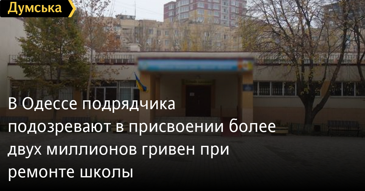 Правоохранители объявили подозрение директору подрядной компании, который, по данным следствия, присвоил более двух миллионов гривен на тендере по благоустройству школы в Суворовском районе и прилегающей к ней территории.