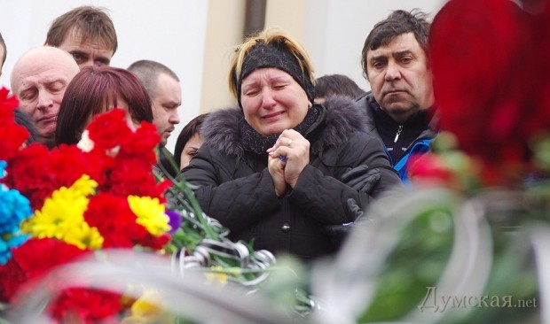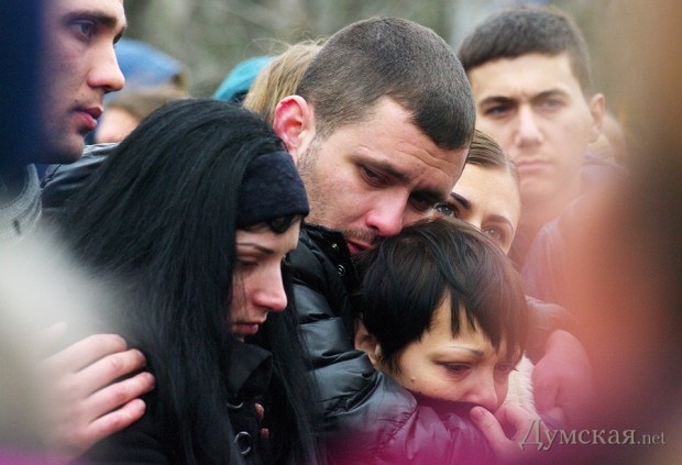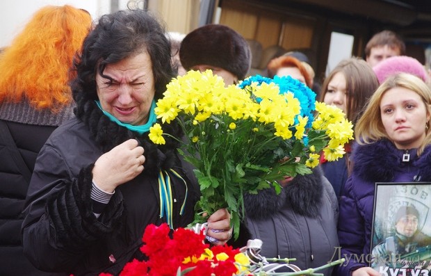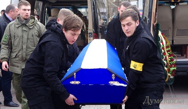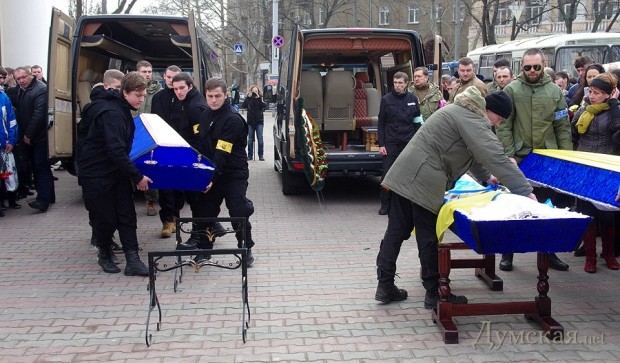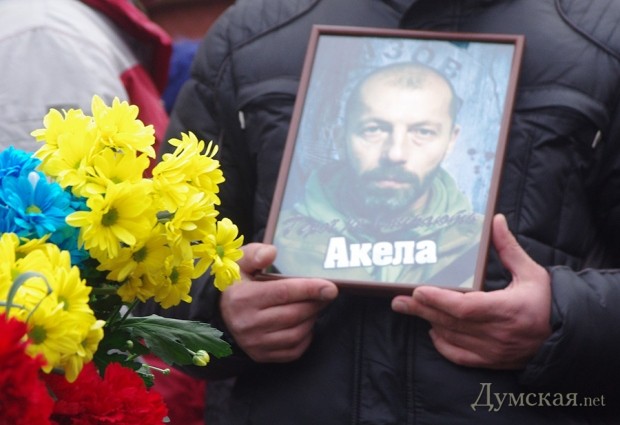 Сегодня в полдень на Соборной площади одесситы простились с земляками, бойцами добровольческого полка «Азов» Николаем Троицким (позывной «Акела») и Александром Кутузакием (позывной «Кутуз»), которые погибли 15-го февраля в боях под Широкино.