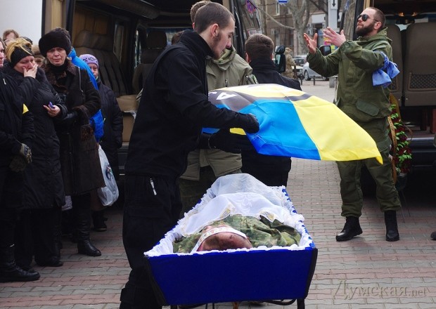 По просьбе семьи Александра, гроб с его телом был открыт, и собравшиеся могли видеть лицо воина, обезображенное боевиками после его гибели.