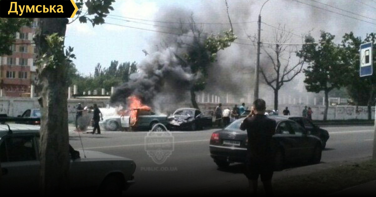Как сообщают очевидцы в «Одесском паблике», пожару предшествовало серьезное столкновение. Свидетели предполагают, что в результате аварии в автомобиле произошло возгорания газового баллона.