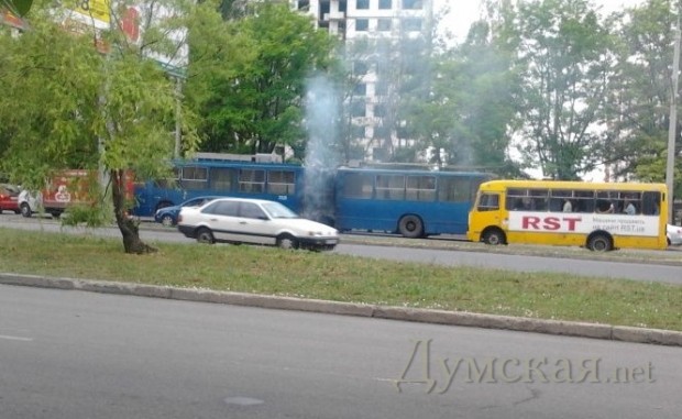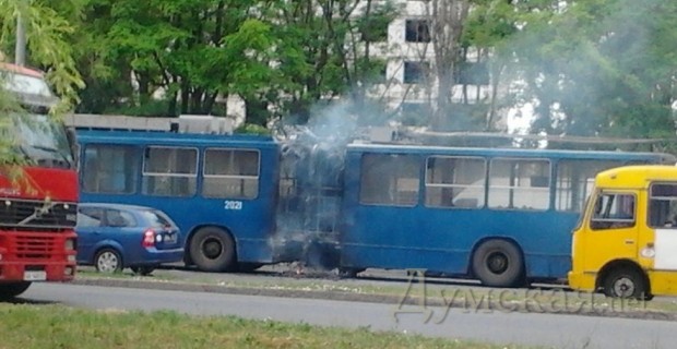 Как сообщают очевидцы, инцидент произошел на проспекте Маршала Жукова, в районе остановки «Продмаг». «Резиновая гармошка сгорела, как спичка. Когда прибыли пожарные, меха уже прогорели и просто дымились. Потушили быстро», — пишет пользователь «Одесского форума».