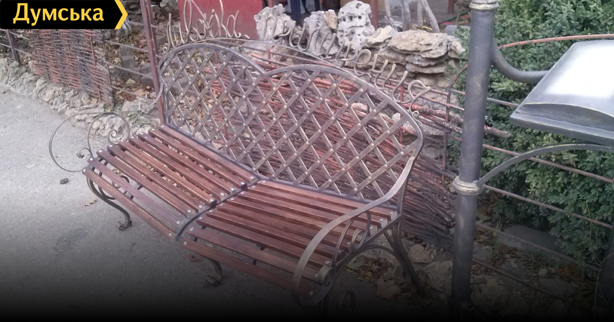 Такая лавочка в г. Ильичевске имеется возле новой арки влюбленных. А про эту лавочку на Ильфа и Петрова я не знаю почему только сейчас вспомнили, она там уже давно стоит.