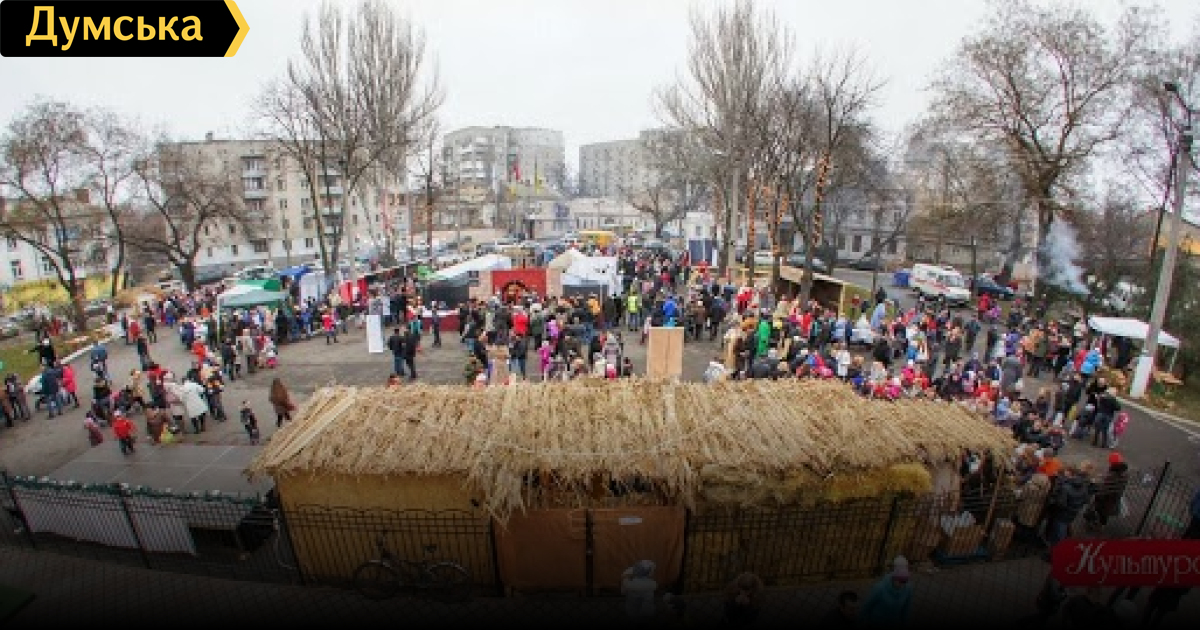 Также в сквере появилась украинская деревня. В ней добрые хозяюшки в аутентичных нарядах учат детей и взрослых петь щедровки и колядки, а также угощают казацким кулешом, настоящим украинским салом и горячим чаем. Для детей припасены сладости.
