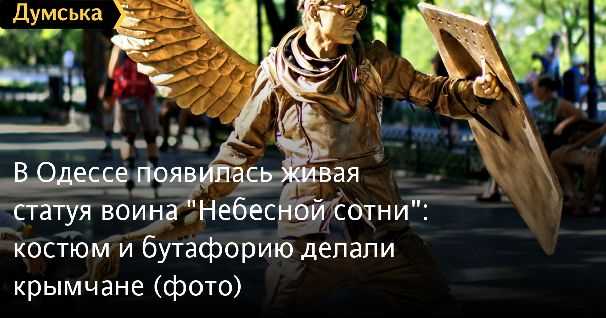 «После февральских событий на Майдане я понял, что обязательно должен сделать такую статую, — рассказывает артист. — Как ни парадоксально, костюм и бутафорию делали в Крыму. Когда в студии узнали, что именно они сделали, то очень испугались последствий. Пришлось переправлять контрабандой, что сильно повысило стоимость самого костюма.
