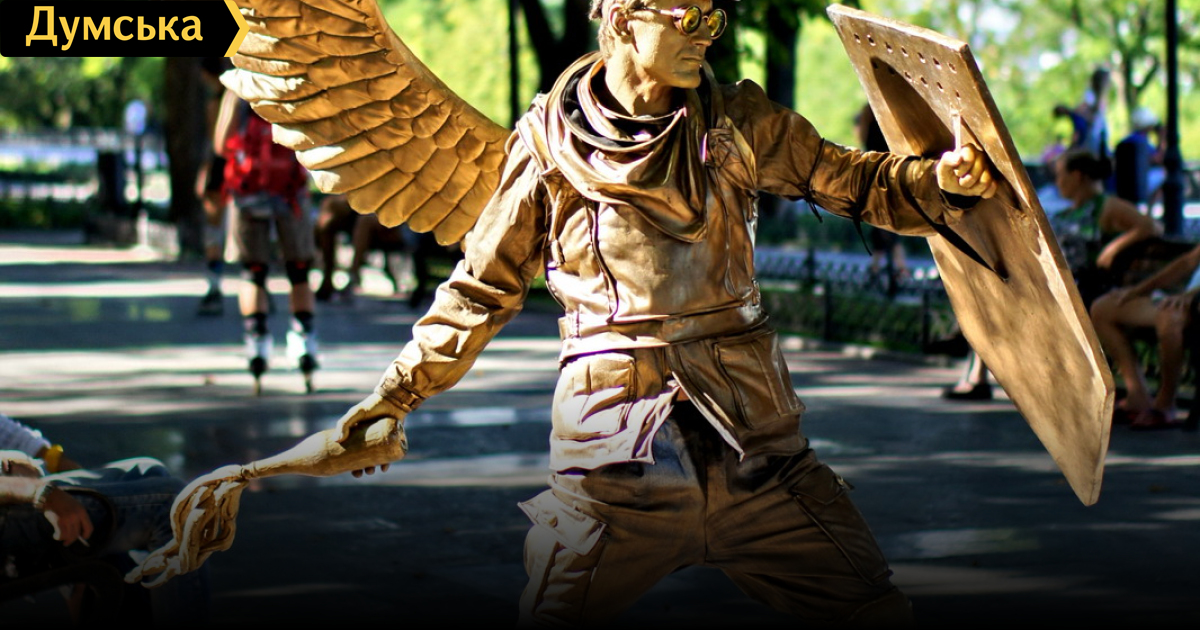 В Одессе появилась живая статуя воина «Небесной сотни»: костюм и бутафорию делали крымчане