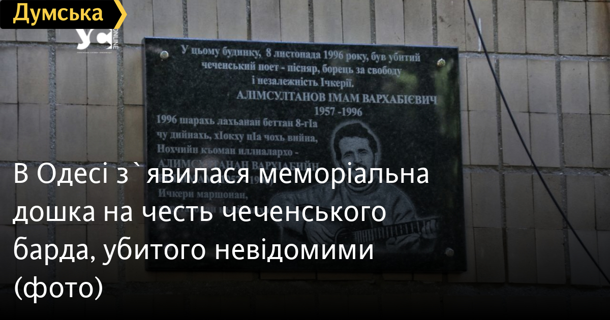 В Одесі з`явилася меморіальна дошка на честь чеченського барда, убитого невідомимиМеморіальна дошка на честь відомого чеченського поета і виконавця Імама Алімсултанова з'явилася в Одесі. Встановили її на Фонтанській дорозі, 12/9. Саме в цьому будинку 1996 року Алімсултанова було вбито. Ініціаторами встановлення дошки виступили бійці чеченського батальйону імені Шейха Мансура, які зараз беруть участь у війні проти російських окупантів, пише УСІ. Командир батальйону Муслім Чеберлоєвський розповів, що ідея з'явилася близько двох років тому і тільки зараз вдалося отримати всі необхідні дозволи. Зазначимо, що з початком Першої чеченської війни Імам Алімсултанов виступав перед чеченськими солдатами, а потім вирушив супроводжувати поранених до Туреччини. У Стамбулі він давав безліч концертів, збирав гроші на лікування поранених. Після повернення до Чечні за його сприяння було звільнено 25 українських будівельників із Кіровограда, які перебували в заручниках, а коли він після цього повертався до Стамбула через Одесу, дав у нашому місті п'ять концертів. На початку листопада 1996 року до будинку, де жив співак в Одесі, увірвалися троє невідомих і розстріляли впритул його і двох його товаришів. Цей злочин досі залишається нерозкритим, але в батальйоні імені Шейха Мансура впевнені, що за вбивством стоять російські спецслужби. Помітили помилку? Виділяйте слова з помилкою та натискайте control-enter |