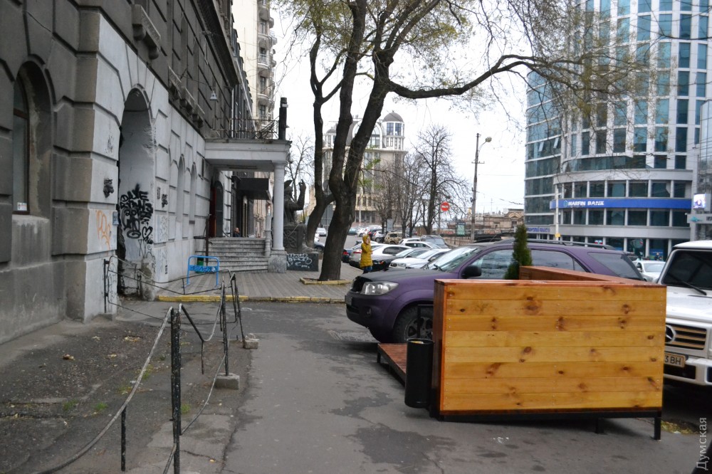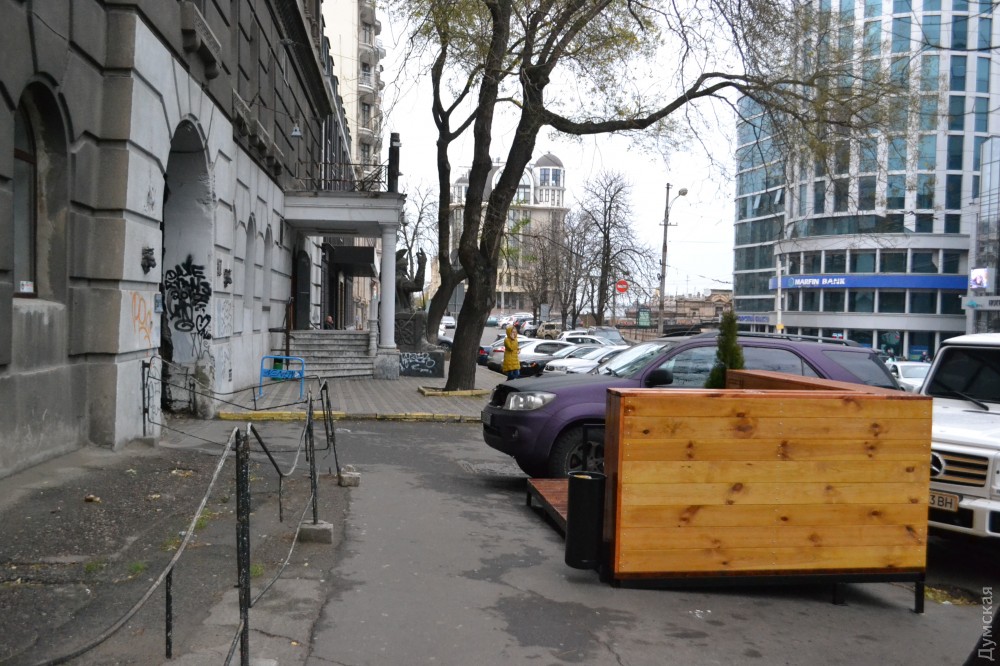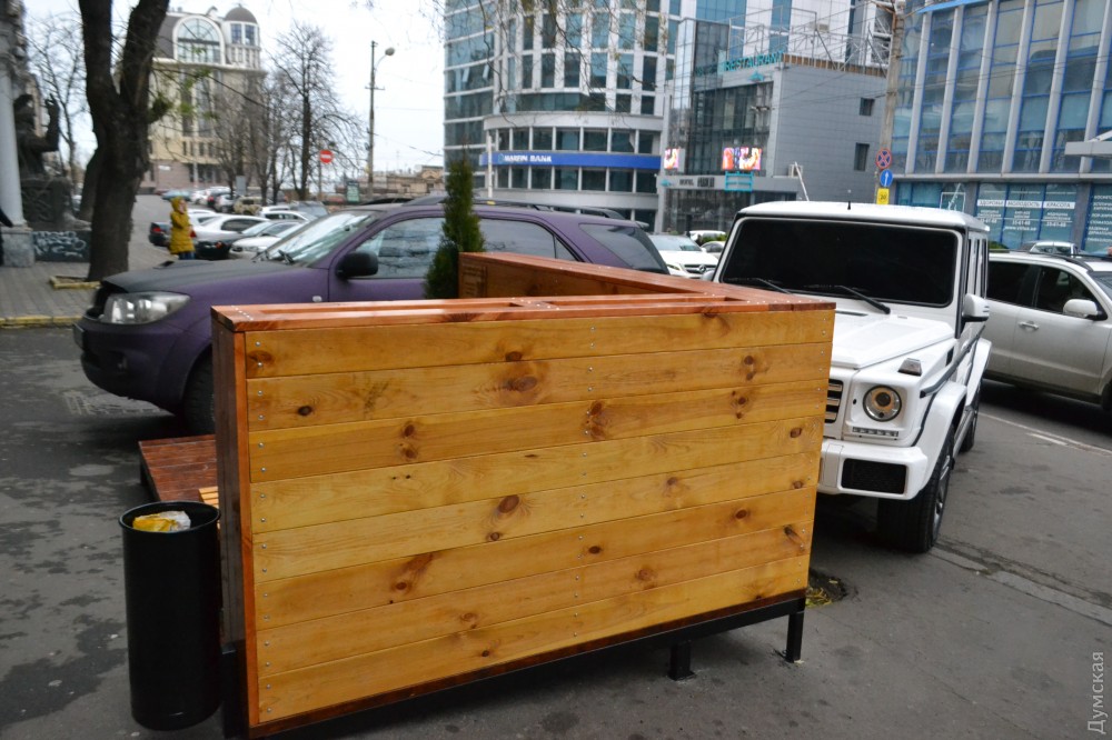 На Польской угол Бунина появился первый в Одессе парклет — небольшая зона отдыха на тротуаре.