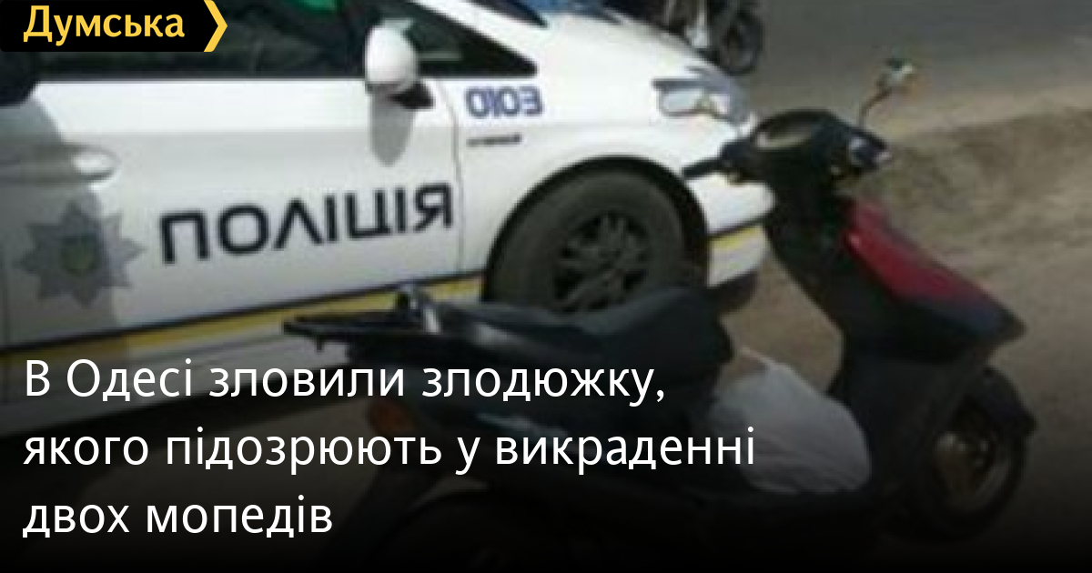 В Одесі зловили злодюжку, якого підозрюють у викраденні двох мопедівПоліцейські затримали підозрюваного у викраденні двох мопедів. Зловмисник привласнив скутери, залишені власниками у дворах на вулиці Преображенській та Куликовському провулку, повідомляють в прес-службі поліції регіону. Чоловік спочатку виламував на байках замки блокування керма, після чого котив їх у центр міста, де продавав за 800 гривень. Фігуранту оголосили про підозру за статтею 289 (незаконне заволодіння транспортним засобом) Кримінального кодексу України. Поліцейські встановлюють місце знаходження збутого мототранспорту. Помітили помилку? Виділяйте слова з помилкою та натискайте control-enter Новини по цій темі: 29 липня 2025: В Усатово Одеської області сталася перестрілка: поліція працює на місці (відео, оновлено) 28 липня 2025: П'яний на "Ягуарі" або гіпертонік? Звільнений топ-посадовець одеської поліції хоче повернутися на службу 19 червня 2025: Дівчинку, яку шукали сотні одеситів, знайшли вбитою: поліція працює з чоловіком, ймовірно причетним до загибелі 27 травня 2025: Увели гектар в університету: на Одещині засудили земельних аферистів, але без посадки і Хвоста |